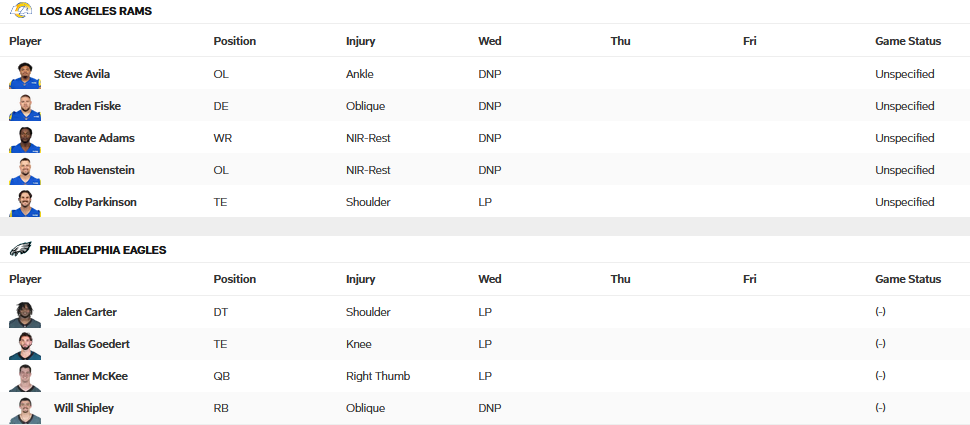Es war kalt in Philadelphia, als wir letztes Jahr in der Divisional Round auf die Philadelphia Eagles getroffen sind. In einem vom Schnee geprägten Spiel unterlag man dem späteren Superbowl-Sieger mit 28-22, was allen voran an Ihren Star-Runningback Saquon Barkley lag, der mal eben 2 Touchdown-Runs mit je über 60 Yards hatte und das Spiel mit 205 Total Yards beendete. Mit Nate Landman hat das Front Office der Rams einen bisher überragend aufspielenden Linebacker verpflichtet, der uns hoffentlich hilft, Barkley diesmal unter Kontrolle zu bringen. Mit vorhergesagten 23°C gilt es nun bei schönerem Wetter die Revanche zu suchen und eine trotz 2-0 Record von Startschwierigkeiten gebeutelte Top-Mannschaft zu bezwingen.